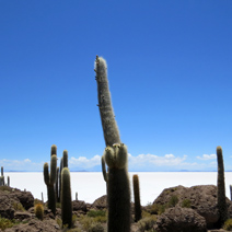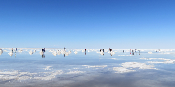 夕暮れ時の不思議な世界が広がるウユニ塩湖